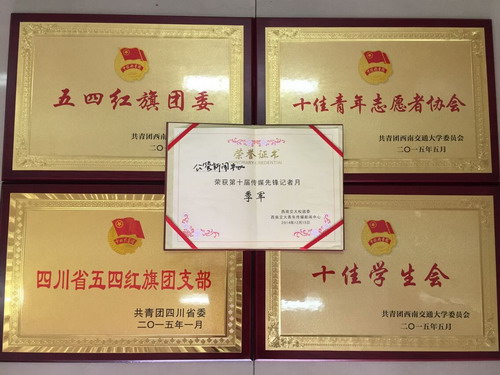 本年度,必赢bwin官网分团委同交运学院分团委、峨眉校区分团委等五个分团委获得必赢bwin线路检测中心官网“五四红旗团支部”光荣称号。