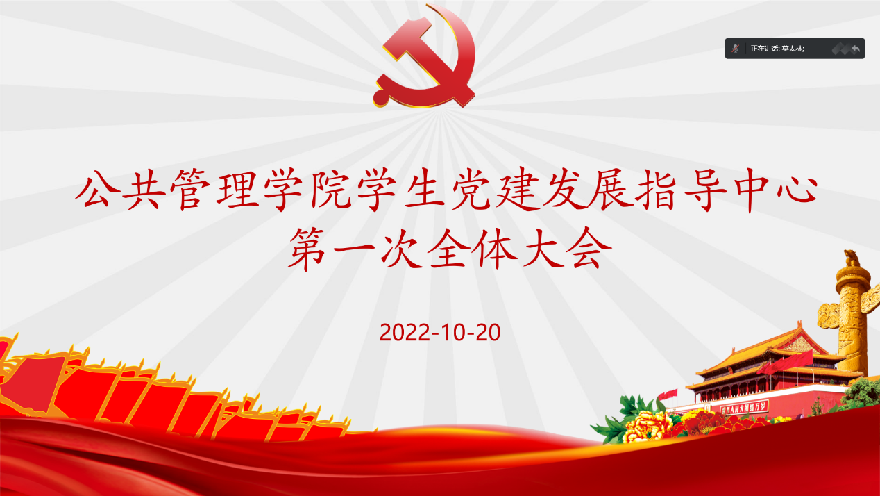 会议第二部分,由莫太林老师主持召开“2022年秋季学期学生党建中心第一次全体会议”,会议主要从学生党建中心成立背景、定位与期望、部门职责、重点工作等方面展开。他指出,目前我们面临着上级党组织和基层学生党支部有效链接不足,基层专职学生党建队伍不足,学生党建工作存在规范性不足、创新性不够、作用不强等系列问题。而党建中心是连接学校、学院党委和学生党支部之间的桥梁,能有效将上级党组织的决议和要求传导给学生党支部,整体性加强了对基层学生党支部的链接和对学院学生党建工作的规范指导,促使学院基层党建工作规范统一、有序运行。在此,他提出了新的工作期望,希望全体干部都能弘扬伟大建党精神和自我革命精神,在支部工作做成做新的基础上,进一步凝练总结出优秀可传承的工作方法,打造富有特色的具有先进典型示范引领作用的支部。