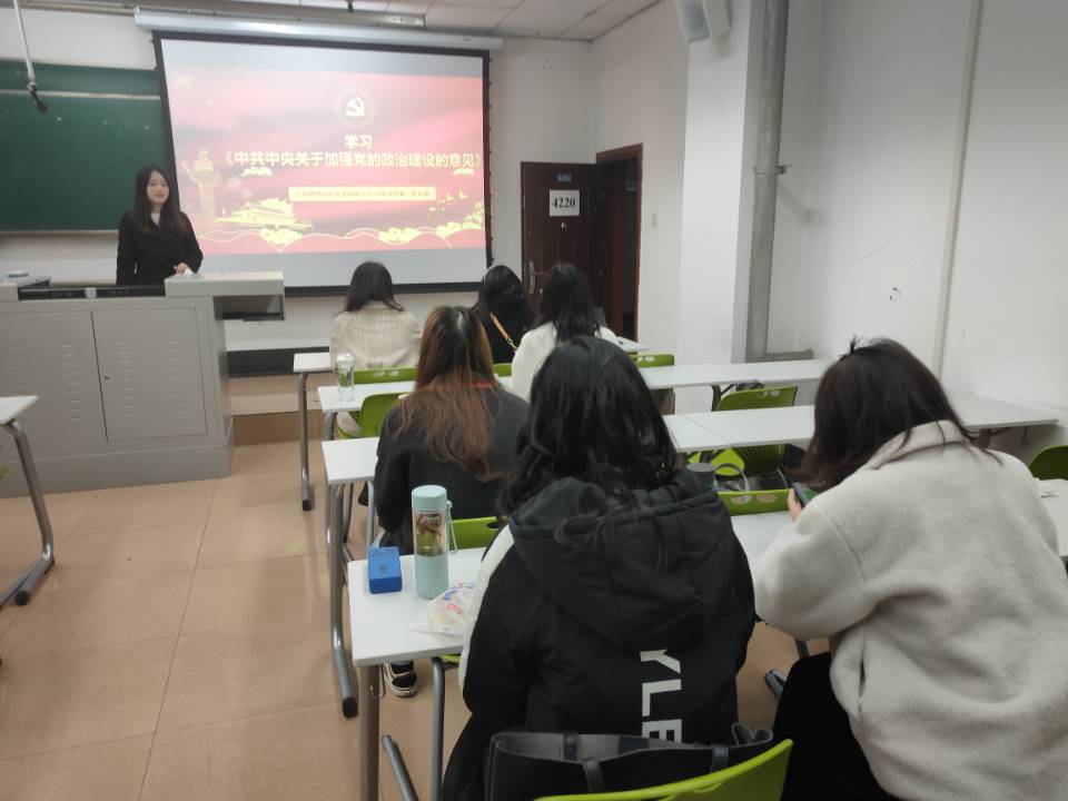 首先,党支部书记肖秋月同志代表党支部委员会述职,报告一学期来党支部工作,通报党支部委员会查摆问题情况,并请党员进行评议。述职内容主要包括以下三个部分:第一部分是强化理论学习、不断提升政治素养,第二部分是坚持党员发展程序、严格党员管理工作,第三部分是加强思想引领,打造支部品牌活动。党支部委员会也进行了反思,主要强调了以下两点:以后的活动会有详尽的活动计划、有明确的主题、有详实的活动记录等;另外,支部活动新闻稿在质和量上都有待改善。