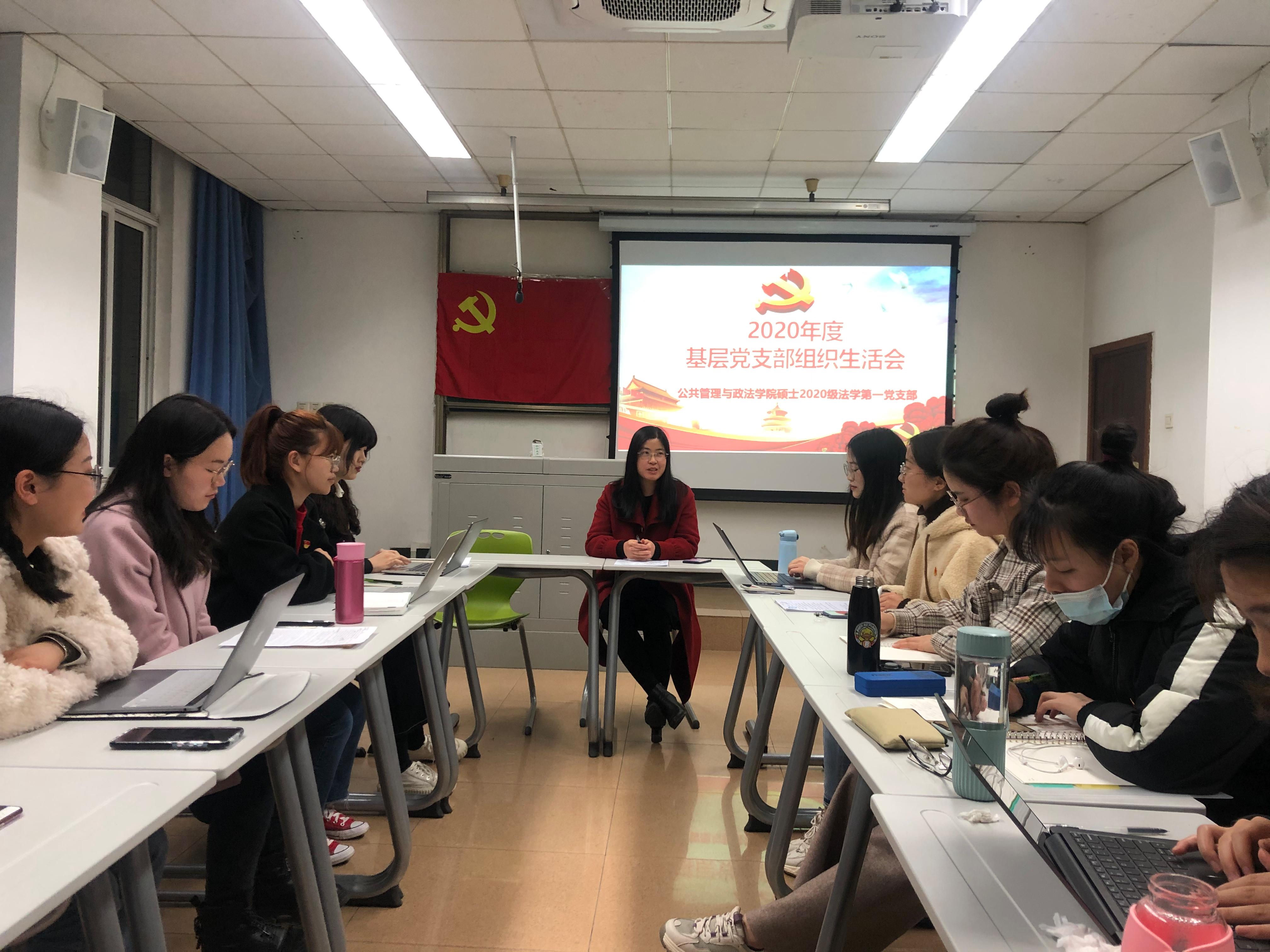 2021年3月11日19:00-21:00,硕士2020级法学第一党支部在逸夫楼220教室召开了2020年度基层党支部组织生活会和开展民主评议党员,学院党委副书记余小英老师受邀参加并进行点评。