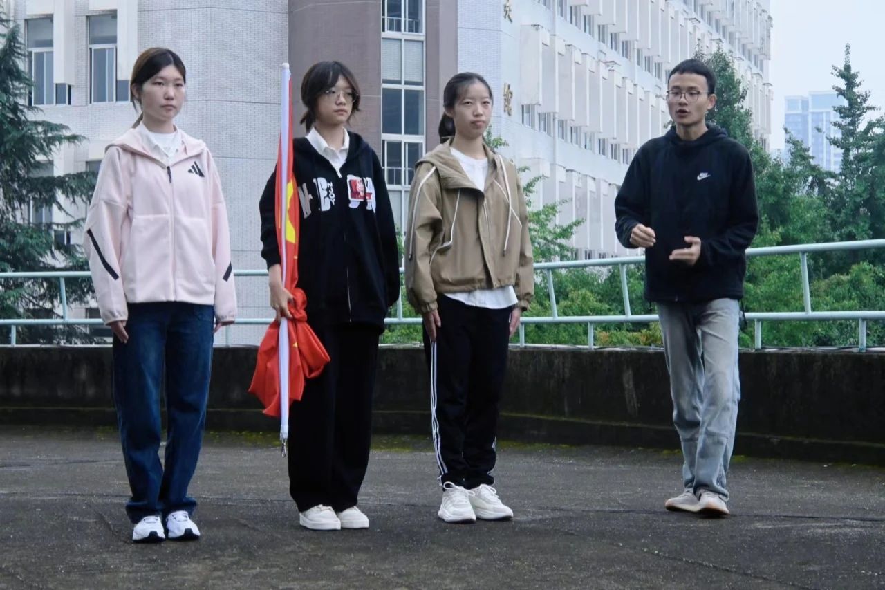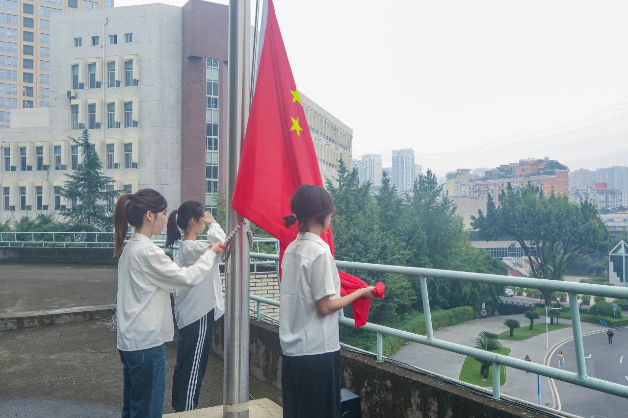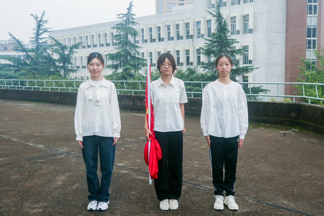目光所至,皆为华夏,五星闪耀,皆为信仰。本科2024级团支部书记刘星语、张欣桐、黄羽芩三位同学担任本次升旗仪式的升旗手,负责国旗的升降及护送工作。