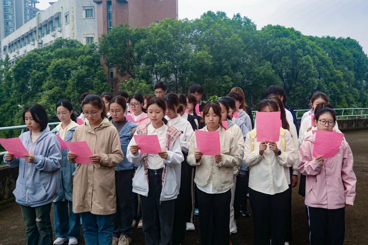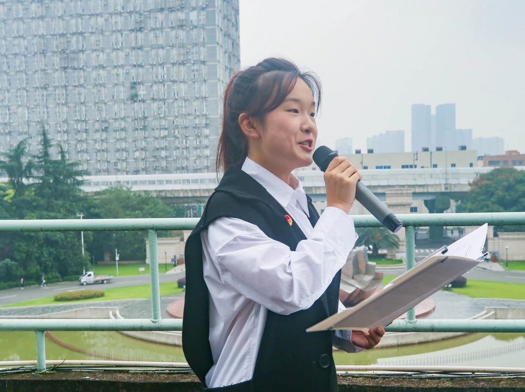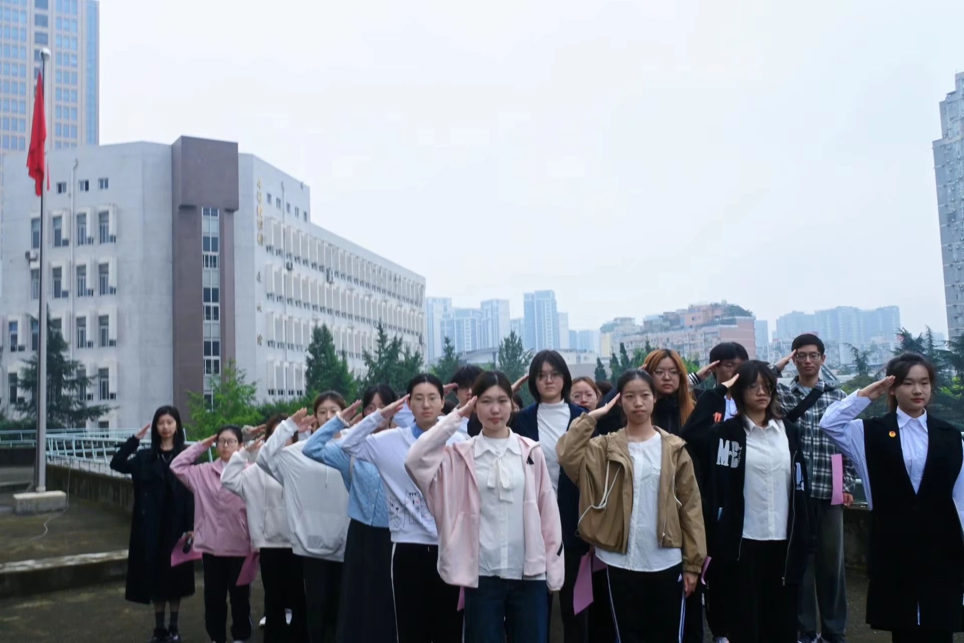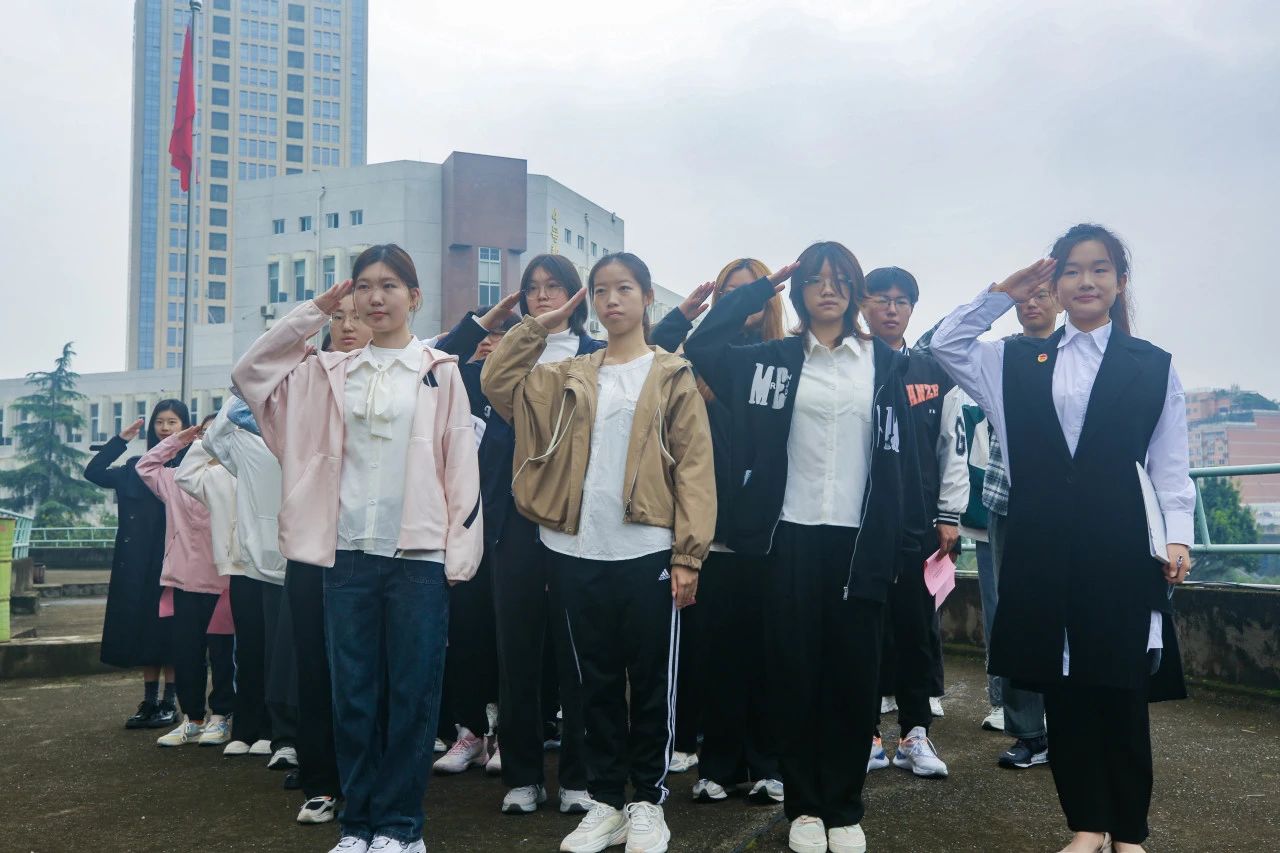 目光所至,皆为华夏,五星闪耀,皆为信仰。本科2024级团支部书记刘星语、张欣桐、黄羽芩三位同学担任本次升旗仪式的升旗手,负责国旗的升降及护送工作。